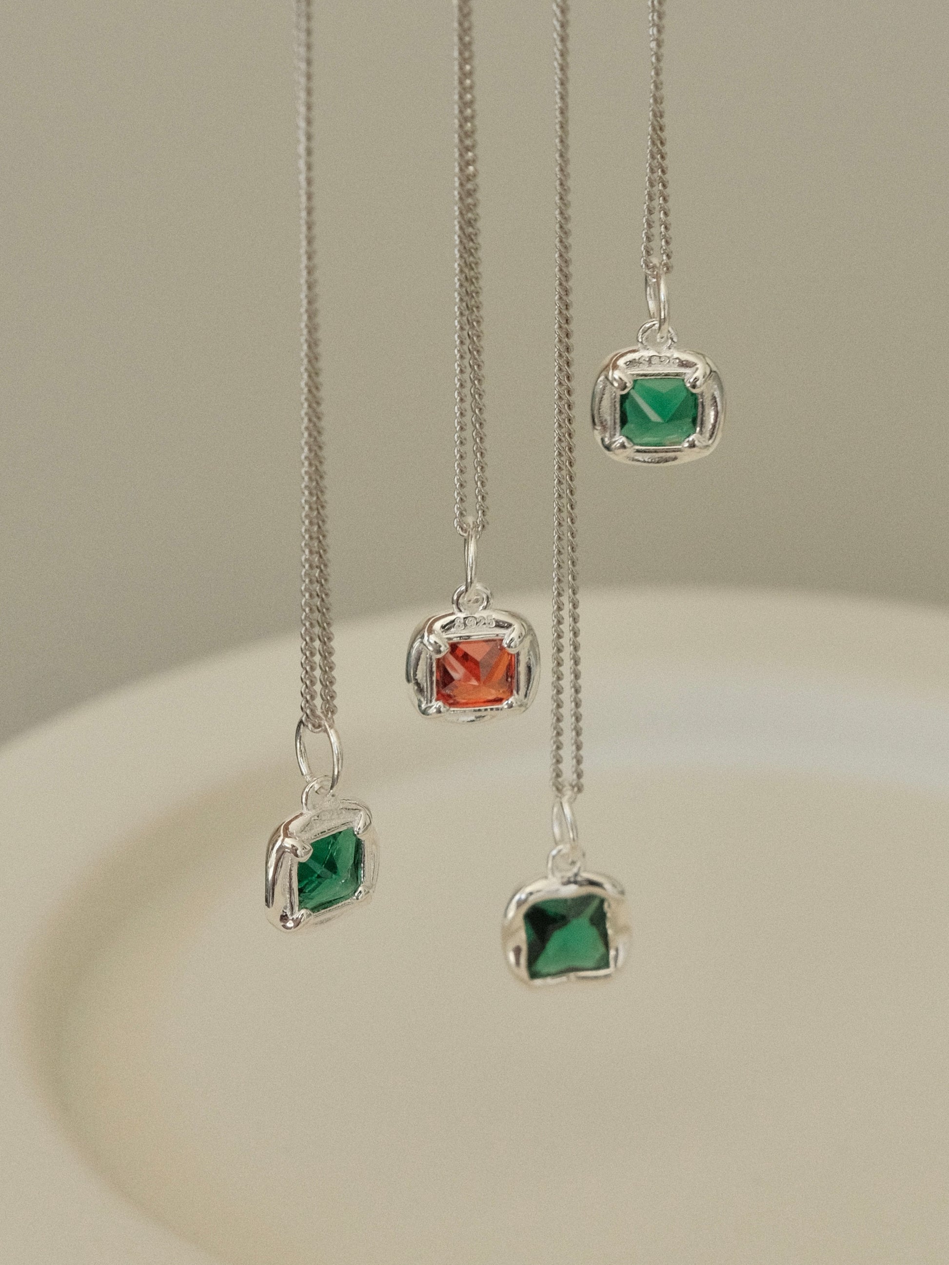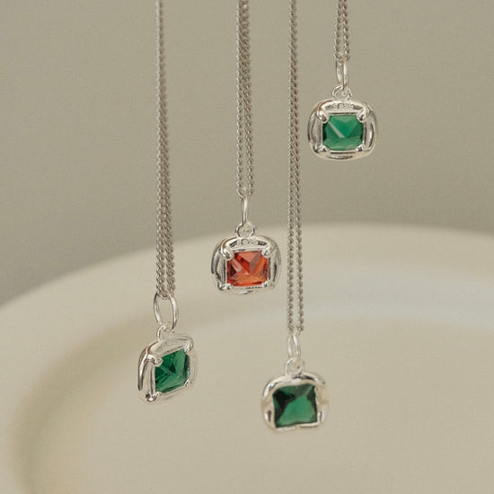 Material: High-Quality Solid Sterling Silver, Emerald & Garnet Gemstone